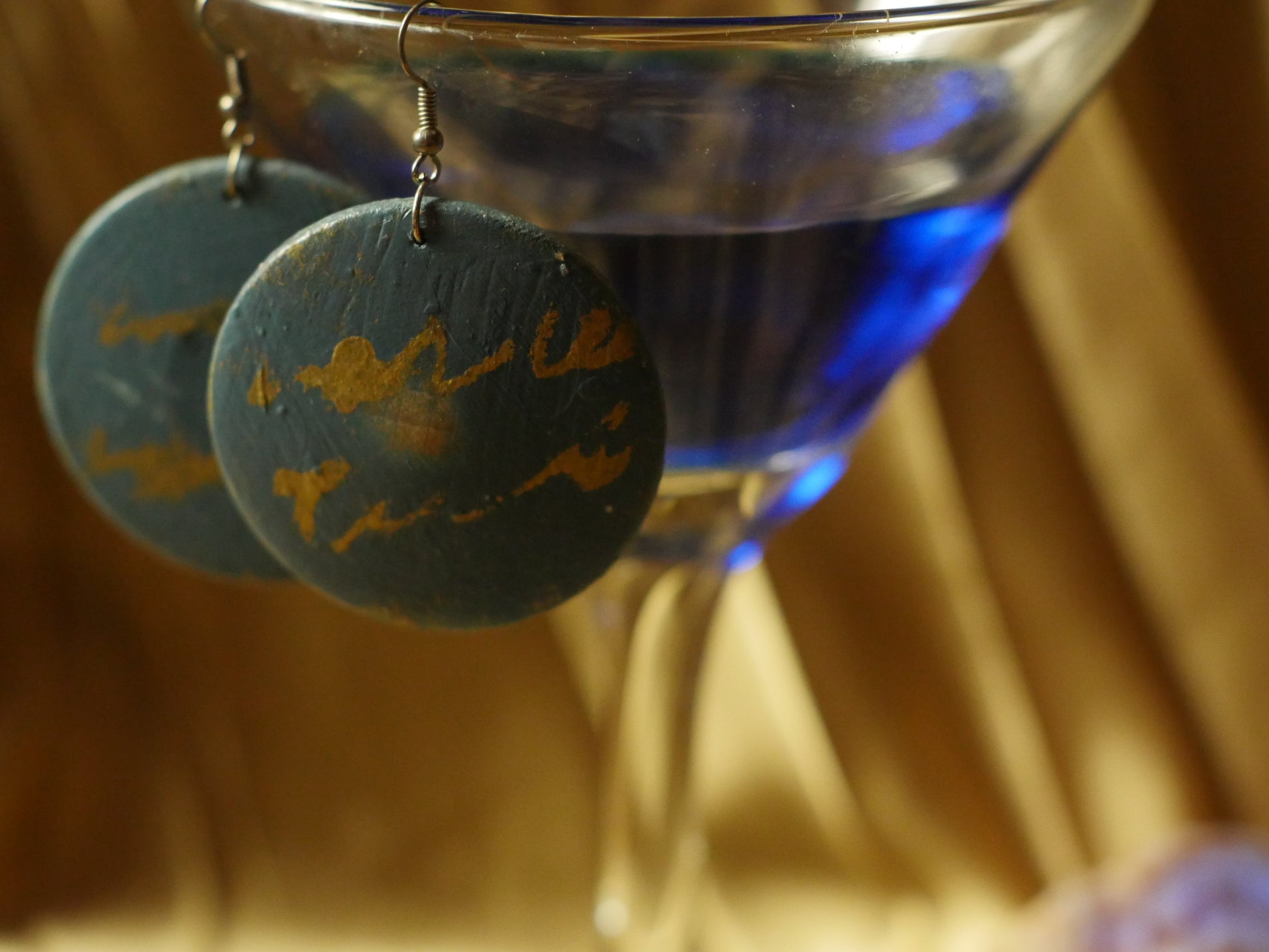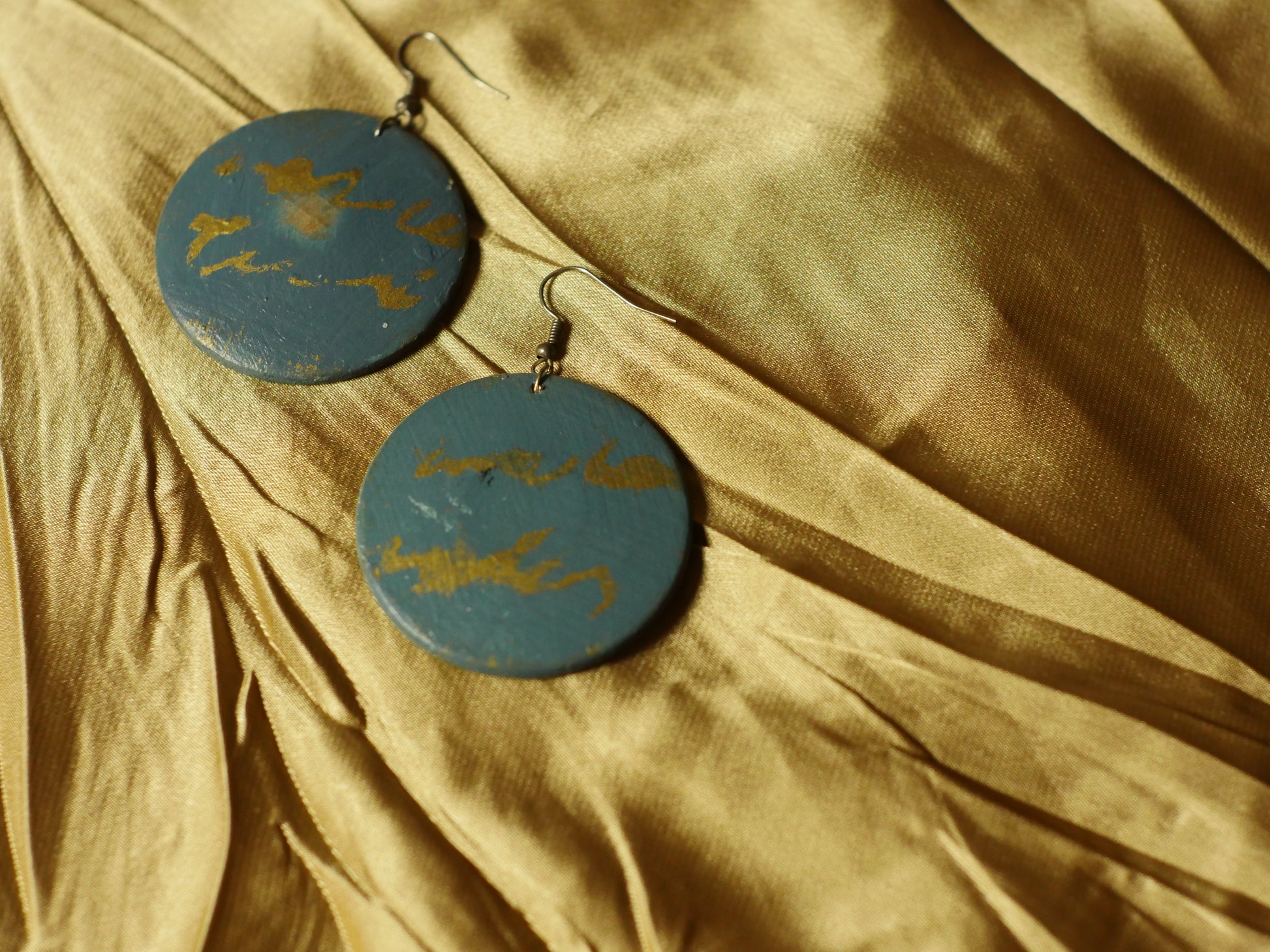 Χειροποίητα σκουλαρίκια από ξύλο, έχει δύο όψεις με διαφορετικό σχέδιο, ζωγραφισμένα με τεχνοτροπία με βαφές ανεξίτηλες και υλικά αθώα για τον άνθρωπο και για το περιβάλλον΄