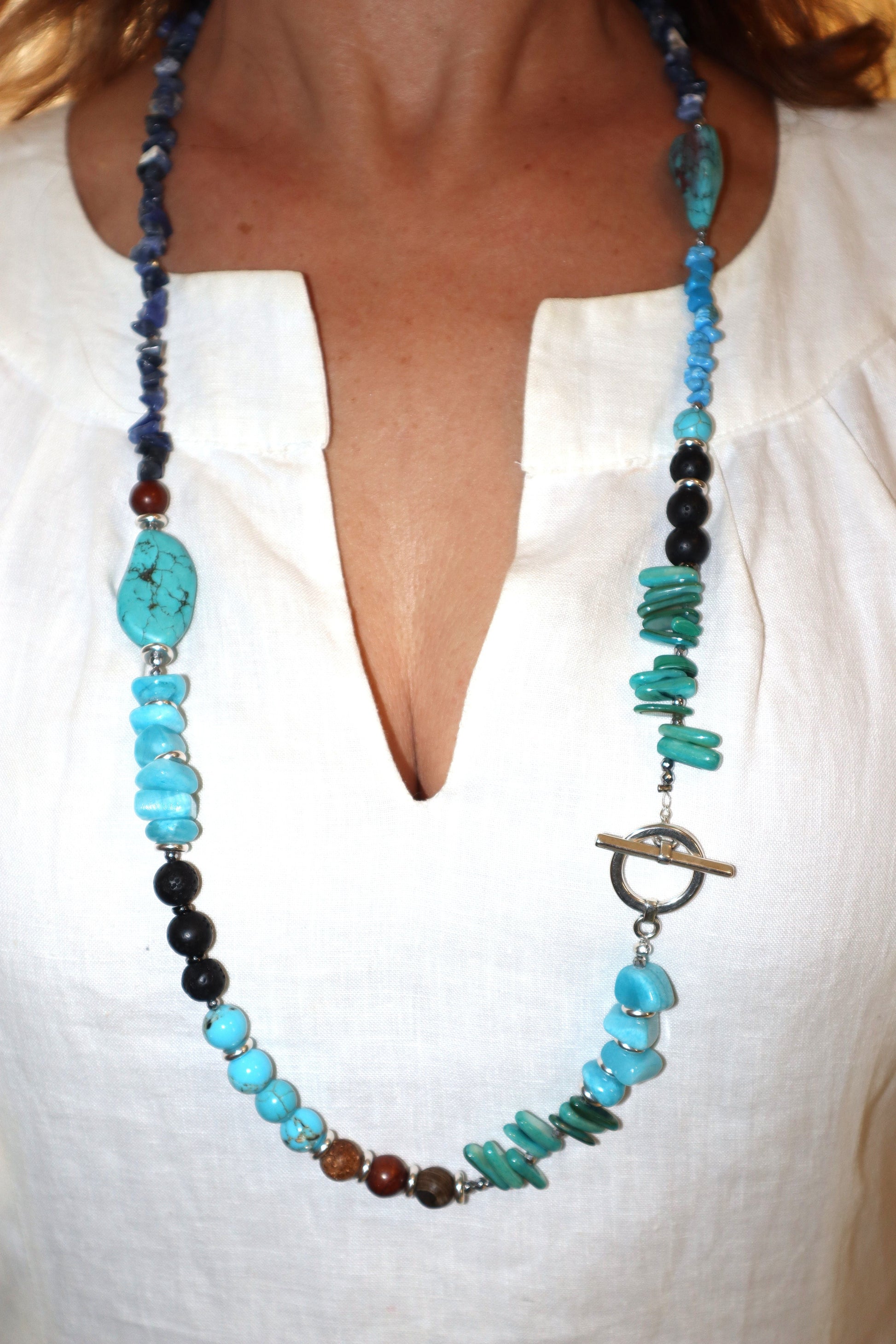 Χειροποίητο Μακρύ Κολιέ με Ποικιλία Ημιπολύτιμων Λίθων– Θιβέτ