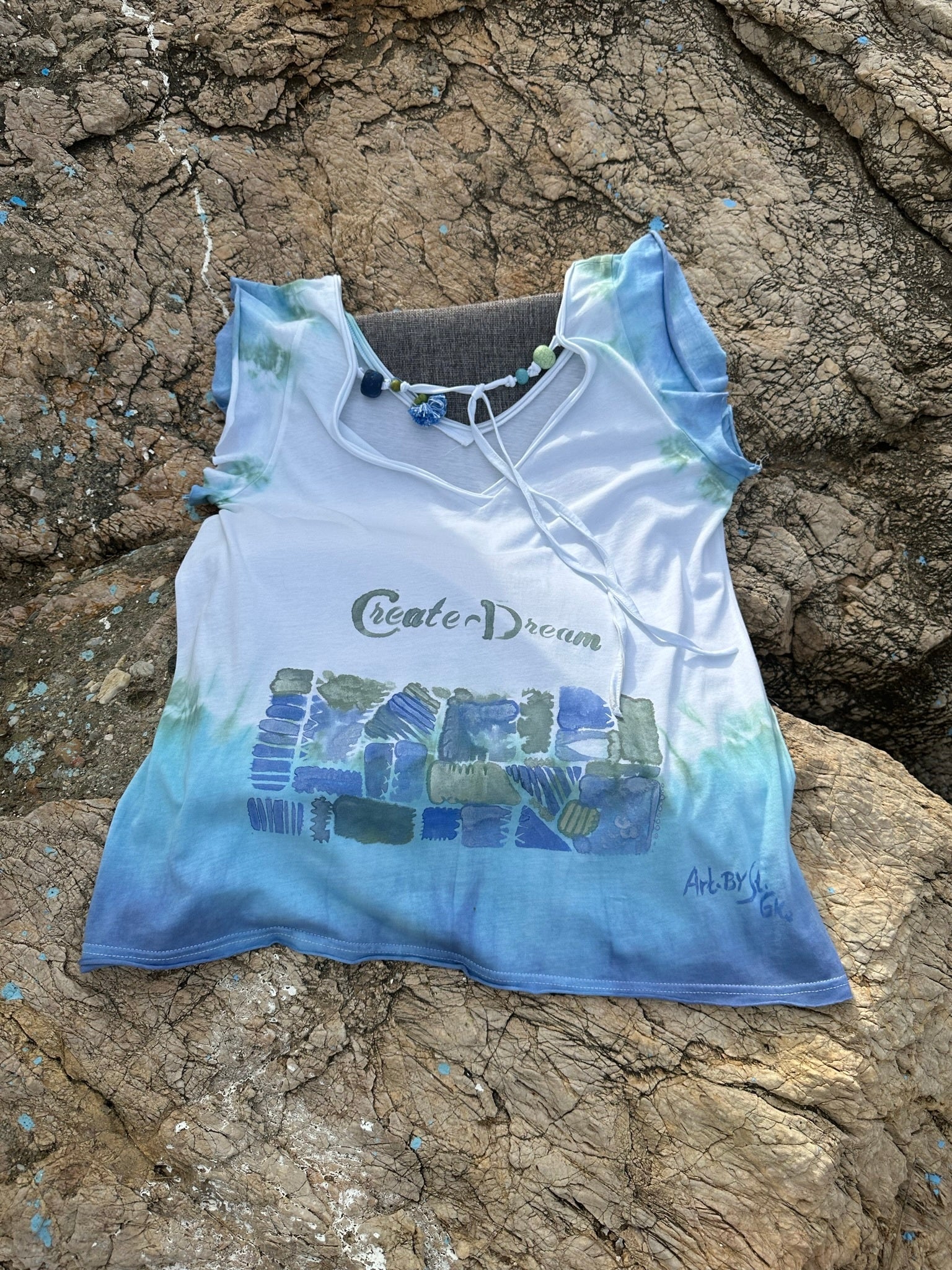 Από κάθε σχέδιο κάνω μόνο ένα, η κάθε μπλούζα είναι διαφορετική, με νέα έμπνευση δημιουργώ με τη σκέψη πάντα να είναι μοναδικό έργο τέχνης.