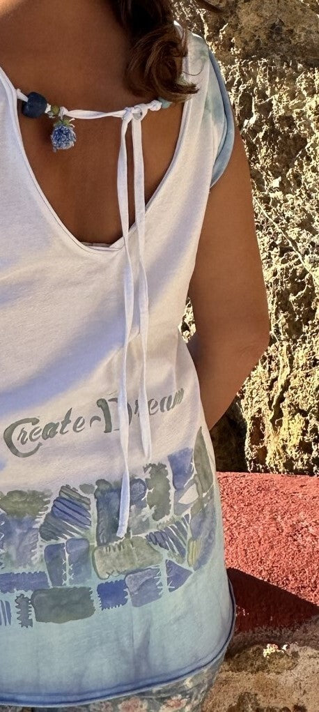 100% βαμβακερή μπλούζα με ζωγραφική στο χέρι με πινέλο με ανεξίτηλα χρώματα.